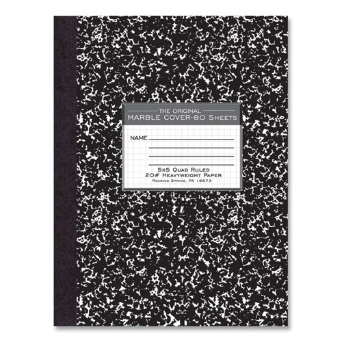 Hardcover Marble Composition Book, Quadrille Rule (5 sq/in), Black Marble Cover, (80) 10.25 x 7.88 Sheets, 24/Carton