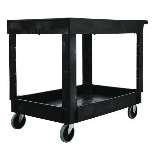 Heavy-Duty Utility Cart with Lipped Shelves, Plastic, 2 Shelves, 500 lb Capacity, 25.78″ x 45.25″ x 33.25″, Black