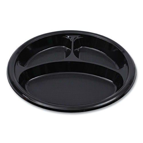 Hi-Impact Plastic Dinnerware, 3-Compartment Plate, 10″ dia, Black, 125/Sleeve, 4 Sleeves/Carton