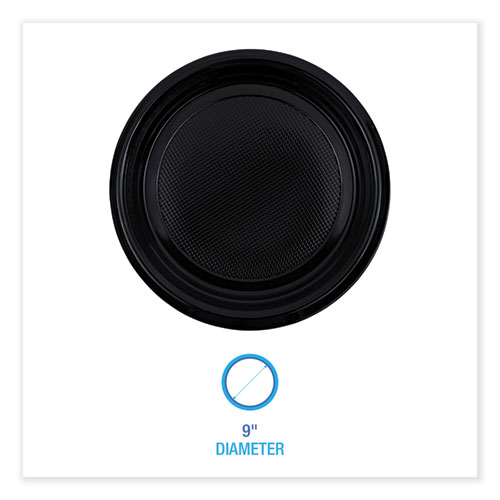 Hi-Impact Plastic Dinnerware, Plate, 9″ Dia, Black, 500/carton