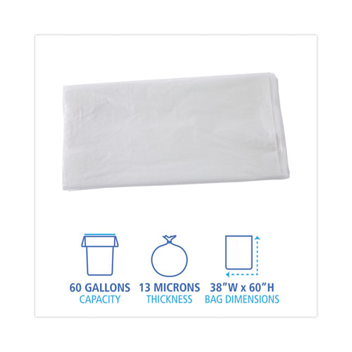 High Density Industrial Can Liners Flat Pack, 60 gal, 13 mic, 38″ x 60″, Natural, Flat Pack, 200/Carton