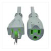 This hospital-grade power cord is designed for computers, mobile carts, printers, scanners, monitors and other compatible hospital equipment within a healthcare facility and outside patient-care vicinities. It features 14 AWG wire suitable for high power connections, making it a reliable solution for large server applications that require a higher-rated, heavier-gauge cable. The 15-ft length allows you great flexibility in placing equipment with respect to the power outlet. This extension cord features a gray SJT jacket and fully molded gray ends. The color-coding allows easy, fast identification in a crowded surge protector and helps prevent the cable from becoming inadvertently disconnected.