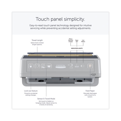 The Kimberly-Clark Professional ICON™ automatic paper towel dispensing system features first-of-a-kind versatility and effortlessly enhances the look of the restroom with one of an exclusive line of six designer faceplates. Inspired by human-centered design, the ICON™ dispenser features intuitive control panel, front-load battery bay and dampened hinge technology. Using direct-drive technology the ICON™ dispenser has a patented dual sensor technology that delivers worry-free, touchless 99.99% jam-free dispensing and is compatible with your choice of Kleenex or Scott roll towels.