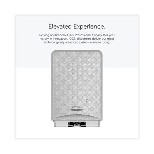 The Kimberly-Clark Professional ICON™ dispensing system is changing the face of the restroom. Featuring first-of-a-kind versatility, the ICON™ dispenser effortlessly enhances the look of the restroom with an exclusive line of designer faceplates to help reimagine the space. These dispensers feature our patented, interchangable faceplate technology and complement the other ICON™ paper towel and toilet paper dispensers in the collection. Select one of our six signature faceplate designs. Touchless operation is critical to maintaining the highest levels of hand-hygiene, and these dispensers will deliver up to 60,000 uses on one set of batteries. Custom mounting bracket with built-in level for easy installation. Can be used with our Kleenex Botanics Soap and Sanitizer, or any of our Scott brand automatic skin care refills.