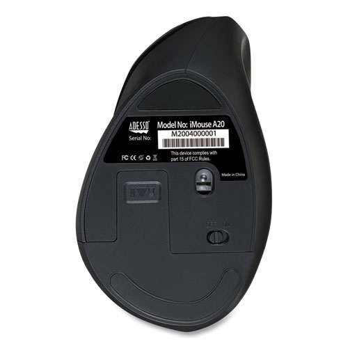 This wireless mouse is specially designed with a vertical shape which provides a uniquely comfortable ergonomic mouse experience. Antimicrobial coating resists germs and bacteria on the mouse surface. Buttons are conveniently located on the side allowing for intuitive control and faster back and forward browsing. The switchable dpi (1000/1600/2400) provides for two levels of control. Its optical sensor tracking method lets you work on most surfaces with better speed and accuracy. It includes a nano receiver to offer you up to 33 ft of wireless freedom and eliminates the constraints that wired mice often cause. The iMouse A20 is plug and play and requires no drivers.