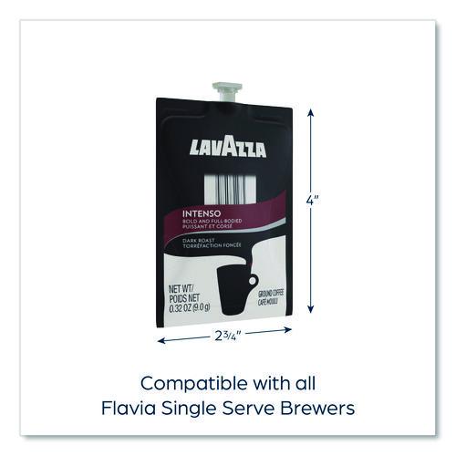 The Lavazza Intenso Dark Roast Coffee features a bold flavor with perfectly balanced smoky and caramelized flavor notes. Our dark roasting process enhances the body while finishing the taste experience with a hint of chocolate flavor notes. This traditional blend of Arabica and Robusta coffees, mainly from South-East Asia and South America, delivers a uniquely Italian coffee aroma. Our brewing process, where nothing touches the ingredients other than hot water, ensures your drink does not taste like previous brews. Compatible with FLAVIA® single-serve brewers. For single-serve sustainability, innovative pouches are 100 percent recyclable through Terracycle.