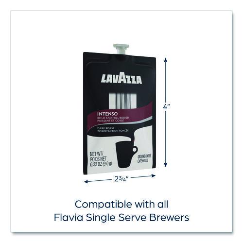 The Lavazza Intenso Dark Roast Coffee features a bold flavor with perfectly balanced smoky and caramelized flavor notes. Our dark roasting process enhances the body while finishing the taste experience with a hint of chocolate flavor notes. This traditional blend of Arabica and Robusta coffees, mainly from South-East Asia and South America, delivers a uniquely Italian coffee aroma. Our brewing process, where nothing touches the ingredients other than hot water, ensures your drink does not taste like previous brews. Compatible with FLAVIA® single-serve brewers. For single-serve sustainability, innovative pouches are 100 percent recyclable through Terracycle.