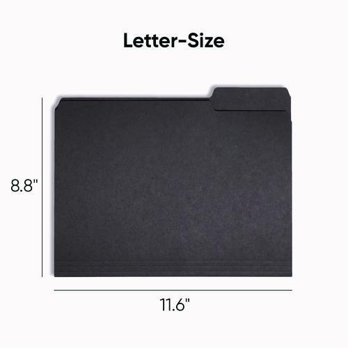 Interior File Folders, 1/3-Cut Tabs: Assorted, Letter Size, 0.75″ Expansion, Black/Gray, 100/Box