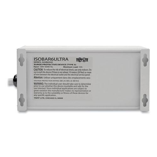 Premium protection for essential network workstations, telecom systems, point-of-sale equipment and audio/video systems, the ISOBAR825ULTRA Isobar® 8-Outlet Surge Protector features a network-grade surge protection rating of 3840 joules to defend your sensitive electronics against even the strongest surges and spikes. The ISOBAR825ULTRA features eight widely spaced NEMA 5-15R outlets, which are arranged in four exclusive isolated filter banks that prevent equipment connected to one bank from interacting with equipment connected to another. These internal barriers also prevent disruptive line noise from causing A/V distortion, computer lock-ups, data errors and similar problems. Large toroidal chokes, ferrite rod-core inductors, HF/VHF capacitors and multiple layers of metal oxide varistors remove EMI/RFI interference and prevent system crashes, reboots and performance problems. Because residential power outlets have three wires—hot line (H), neutral (N) and ground (G)—the ISOBAR825ULTRA protects all three, covering two protection modes: full normal mode (H-N) and common mode (N-G/H-G). Included safety covers protect against dust while blocking accidental contact with unused outlets. An integrated 12A circuit breaker protects all outlets and shuts down connected equipment in the event of an overload. A lighted on/off switch provides one-touch control over connected components. Diagnostic LEDs show power, protection and line fault status at a glance. An extra-long 25-foot (7.6-meter) cord with right-angle 5-15P plug reaches distant outlets and allows furniture to placed flush against the wall.