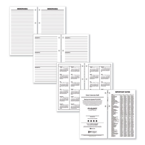 Stay on top of each day’s events. One day per two-page spread, ruled for appointments; Saturday/Sunday combined. Past, current and future months reference. Loose-leaf pages are punched to fit two-ring, E21-style calendar bases.
