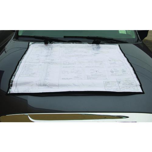 The AdirOffice Plan Shield is a weather-resistant carrying case used by building contractors, architects, engineers, artists, or anyone handling drawings or blueprints. The Plan Shield is made of clear plastic and durable black nylon that can withstand construction site conditions. The plastic is transparent on both sides so it can be used double sided. It also includes a magnet on each corner to keep the plan shield in place on any metal surface. It also includes a convenient handle for carrying. Additionally, it features two hook-and-loop straps to keep the prints rolled up for easy transporting. The Plan Shield will keep your prints from bending and getting wet or dirty.