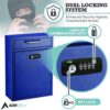 Large Secure Drop Box Wall Mounted Locking Mail Box with Key and Combination lock, 11.2 x 4.7 x 16.2, Blue