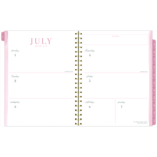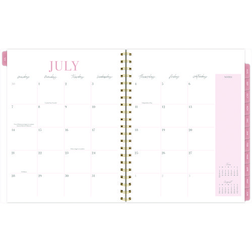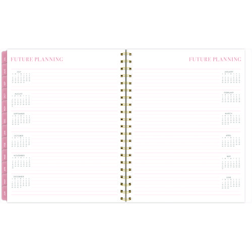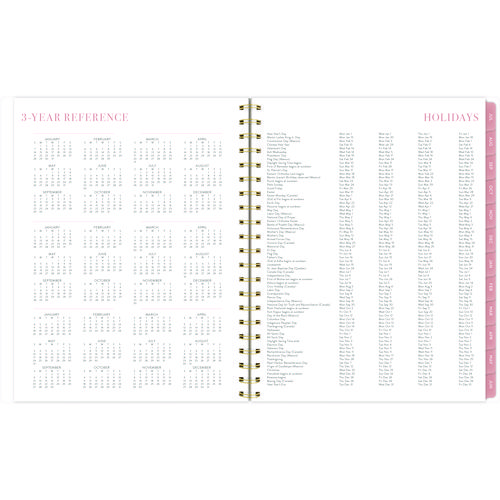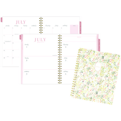 Add some fun to your planning! Featuring a fresh and delicate floral design, the Leah Bisch Academic Year Weekly/Monthly Planner’s helps you keep your day, month and year organized. The weekly spreads provide unruled daily blocks for capturing your plans your way, while a separate week-spanning block accommodates anything that doesn’t fit neatly into any one day. Monthly spreads are tabbed for easy navigation and deliver a familiar daily-block format, a separate notes column as well as past- and future-month reference calendars. Additional resources and references help you stay on track and meticulously plan out this year, well into the next. Double-sided pocket storage pocket accommodates loose-sheets, receipts, event tickets and more. Attractive yet durable poly cover stands up to wear and tear, while reliable, snag-free twin-wire binding keeps everything neatly together.
