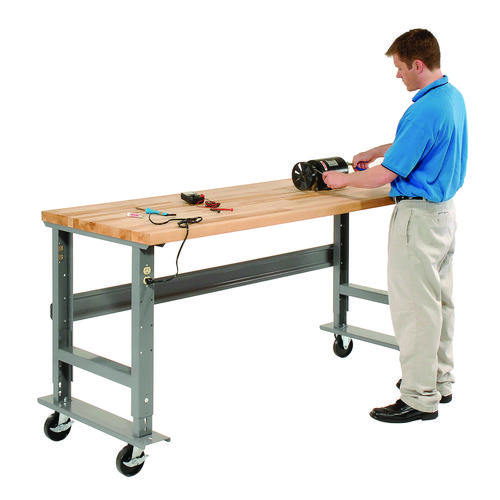 Light Duty Butcher Block Top Adjustable Height Workbench, 800 lbs, 72 x 30 x 36 to 43, Gray