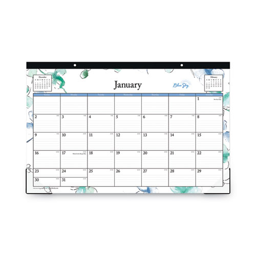 Lindley Desk Pad, Floral Artwork, 17 x 11, White/Blue/Green Sheets, Black Binding, Clear Corners, 12-Month (Jan to Dec): 2025