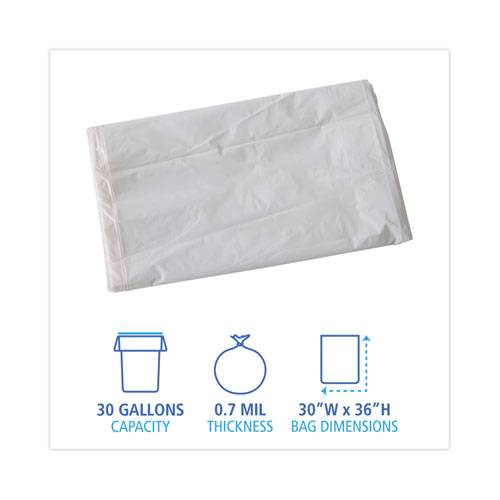 Linear Low Density Industrial Can Liners, 30 gal, 0.7 mil, 30″ x 36″, White, Flat Pack, 200/Carton