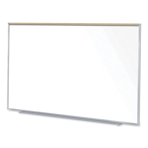 Magnetic Porcelain Whiteboard with Aluminum Frame and Maprail, 96.53″ x 60.47″, White Surface, Satin Aluminum Frame