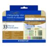 Master the Art of Calligraphy with Staedtler®. This comprehensive set contains everything you need to learn and develop your copperplate calligraphy skills and Spencerian penmanship. In addition to the pens, this versatile set includes a fountain-pen instructions guide, a step-by-step lettering workbook with a practice pad for honing your skills, a full set of interchangeable fountain-pen nibs, a liquid-ink pump and an assortment of liquid-ink cartridges in a range of colors. Delivering enhanced ergonomics, its included nibs also feature rubberized grips for writing comfort. A sturdy and attractive metal case keeps the whole set together, ensuring easy storage and convenient portability.