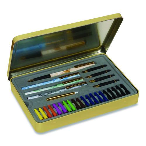 Master the Art of Calligraphy Fountain Pen Set, 33 Pieces, (5) Nib Sizes, (7) Ink Colors, (4) Barrel Colors