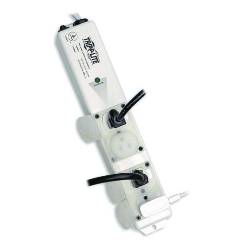 Ideal for standalone use in all patient-care vicinities, therapy rooms, imaging environments, laboratories and administrative areas. This 120 V, 50/60 Hz power strip features a NEMA 5-15P-HG hospital-grade plug and four NEMA 5-15R-HG hospital-grade outlets that include integrated locking safety covers. Plus, 1,410 joules of surge suppression prevent dangerous power spikes that can damage connected equipment and destroy data. A 15 A resettable circuit breaker also protects your equipment from overloads. An LED indicator tells you power is present and protected from surges (with no ground faults or line/neutral reversals). The power strip is protected by an antimicrobial powder coating. Antimicrobial protection helps prevent the growth of bacteria, viruses, fungi, mold and mildew. Mounting slots and flanges let you install the surge protector on a wide variety of surfaces. The all-metal housing ensures safety and is guaranteed to stand up to demanding environments. With a switchless design that prevents accidental shutoff and a 15-ft power cord that provides flexibility in placing the power strip, this surge protector is a recommended replacement for all non-compliant power strips.