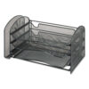 Maximize your desktop space and enhance your organization with this efficient and stylish organizer. It features a vertical section perfect for holding file folders and binders, along with three horizontal sliding trays that easily accommodate letter-sized documents, keeping everything neatly in place. The bottom tray can be removed for added storage flexibility. Built from durable steel mesh, this organizer is strong enough to withstand everyday use while offering a modern, sleek look. Keep your workspace clutter-free and functional with this essential desktop organizer.