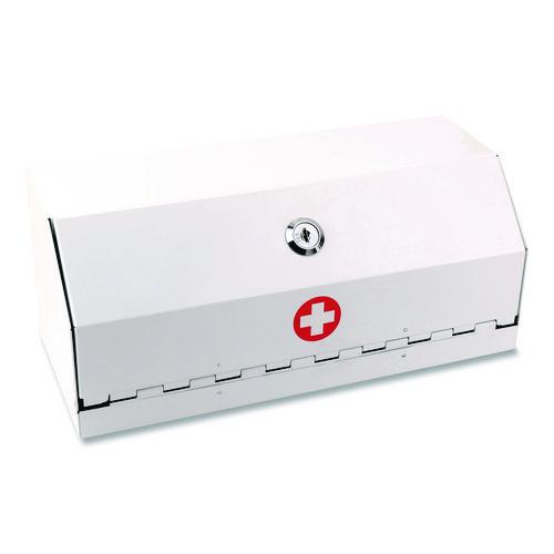 Ideal for home, office and dorms, the Lockable Drug Cabinet keeps prescription drugs locked away from children and those for whom they are not prescribed. Heavy-duty steel safe mounts easily to a wall or cabinet in multiple positions with included hardware. Durable, white powder coat finish is easy to clean and doesn’t draw extra attention to drugs stored inside. Safe includes two keys for lock, screws and anchors for mounting and a Red Cross applique. Not intended to act as an absolute fail-safe to entry.