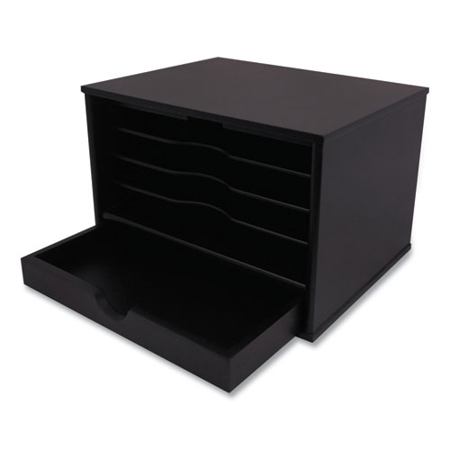 Midnight Black Collection Desktop Organizer, 5 Compartments, MDF, 13.3 x 10.5 x 9.4, Black