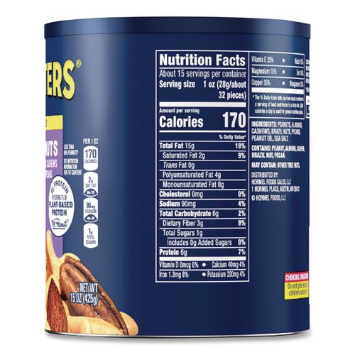 Enjoy a snack of delicious mixed nuts. Includes almonds, cashews, brazil nuts, hazelnuts (filberts), pecans and less than 50% peanuts.