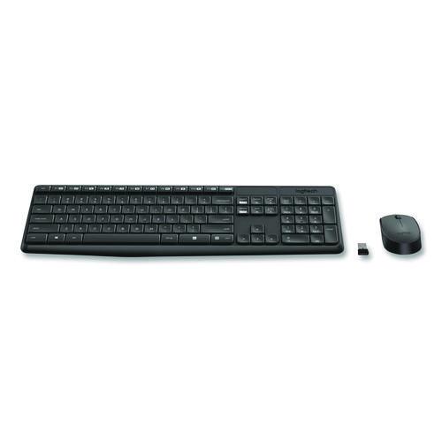 Control your computer with this practical Logitech® MK235 keyboard and mouse set. The USB wireless design is easy to install so you can get to work faster, and the optical tracking on the mouse provides accurate, smooth movement. This keyboard set is made from heavy, durable materials to help it withstand busy offices and daily use, and the full-size and standard layout makes it easy to type and enter data. The mouse and keyboard come in standard black color for a professional look.