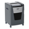 Keep sensitive and confidential information safe and secure with the GBC Momentum Paper Shredder. This shredder uses a micro-cut style shred, which provides P-4 Level Security. It’s a great choice for shredding in the modern office. Active Sensing Anti-Jam Technology helps prevent and fix jams, which keeps your machine running smoothly. The high-performing motor has an impressive continuous run time so you can get more done without stopping. Special features include a bin full indicator, auto shut-off and eco mode. This machine easily shreds CDs, credit cards, paper clips, staples and junk mail.