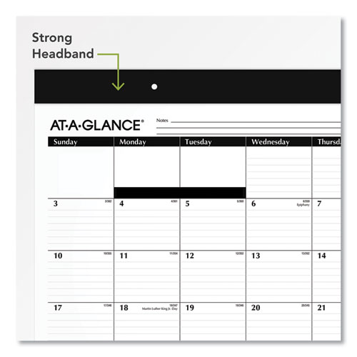 Monthly Refillable Desk Pad, 22 x 17, White Sheets, Black Binding, Black Corners, 12-Month (Jan to Dec): 2025