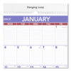 One-month view, plus a yearly calendar reference. Ruled daily blocks. Federal holidays printed in red. Wirebound with hanging loop. Full chipboard back. Printed on high-quality paper.
