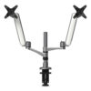 Multi-Directional Dual Monitor Arm, For 30″ Monitors, 360 Deg Rotation, 105 Deg Tilt, 360 Deg Pan, Silver/WH, Supports 20 lbs