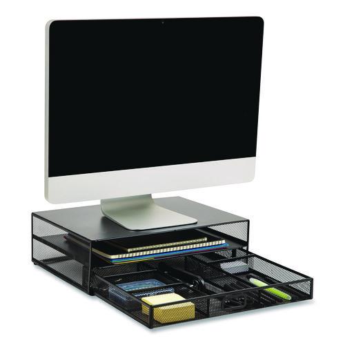 Multi-Tier Monitor Stand with 25-Piece Office Supplies Starter Pack, 15.75″ x 11.75″ x 4.5″, Black, Supports 30 lb