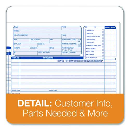 Multipart Auto Repair Work Order Forms, Three-Part Carbonless, 8.5 x 6.94, 50 Forms Total