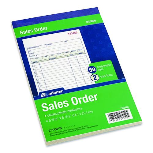 Perfect for keeping hard copy records of your sales, the Adams® Multipart Sales Order Pad features preprinted layout prompts for all the important details. With entry areas for point of sale, customer, order, terms information and more, anything one might wish to capture can easily be accommodated. Open area at top provides space for your company’s logo, and the order form’s carbonless, multipart format lets you provide a receipt to your customer while keeping clean, administrative copies. The pad’s wraparound cover also allows you to place the front cover between sets as you fill out a form, minimizing the potential for write-through.