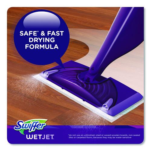 This pre-mixed cleaning solution loosens dirt and grease and leaves your home smelling clean. This Swiffer® WetJet® Floor Cleaner Refill with Gain Scent is a pre-mixed cleaning solution made especially for the Swiffer® WetJet® all-in-one power mop. It is safe, and fast drying formula dissolves dirt and tough, sticky messes to reveal the natural beauty of your floors.