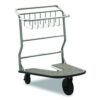 The nesting luggage cart by Suncast Commercial® is the newest innovation to hospitality space. These carts are made to fit through the standard door frame and can hold up to 300 lbs per cart. The metal frame is constructed of rust-resistant high-grade 304 stainless steel and the platform boards are marine grade plywood. A rubber trim surrounds the entire unit to protect the surrounding walls from damage. With the unique nesting design, you can store multiple units in a condensed fashion, while not in use.