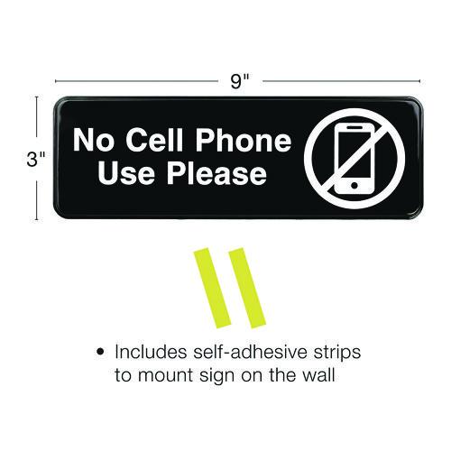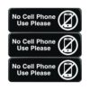 No Cell Phone Use Please Indoor/Outdoor Wall Sign, 9 x 3, Black Face, White Graphics, 3/Pack