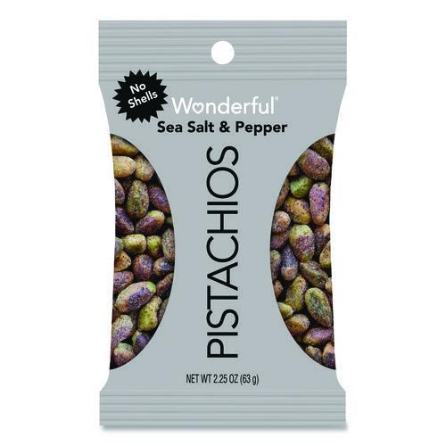 No Shells Sea Salt and Pepper Pistachios, 2.25 oz Pack, 8/Box