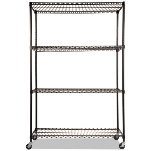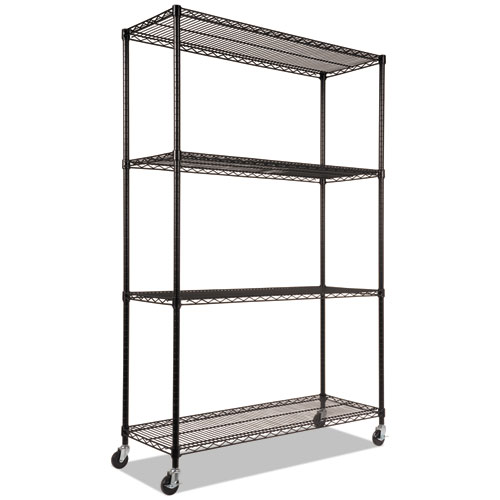 Nsf Certified 4-Shelf Wire Shelving Kit With Casters, 48w X 18d X 72h, Black