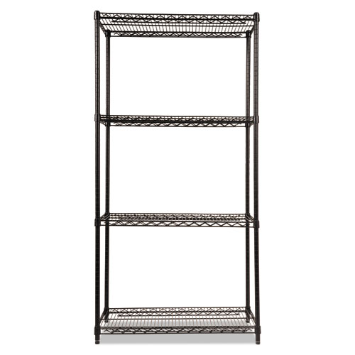 NSF Certified Industrial Four-Shelf Wire Shelving Kit, 36w x 18d x 72h, Black
