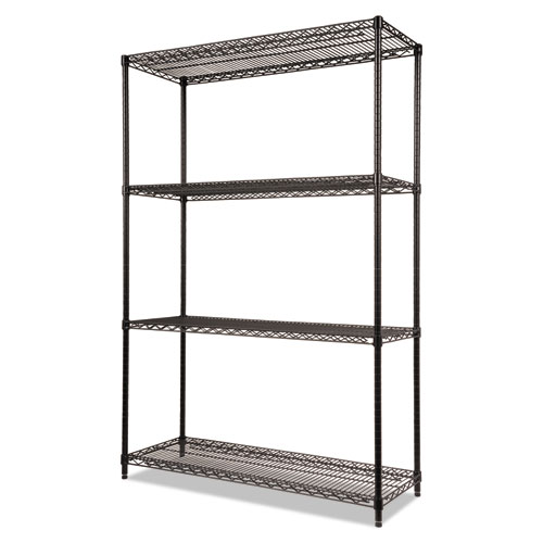 NSF Certified Industrial Four-Shelf Wire Shelving Kit, 48w x 18d x 72h, Black