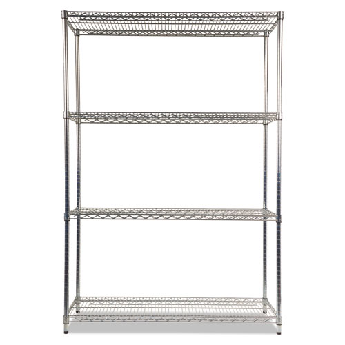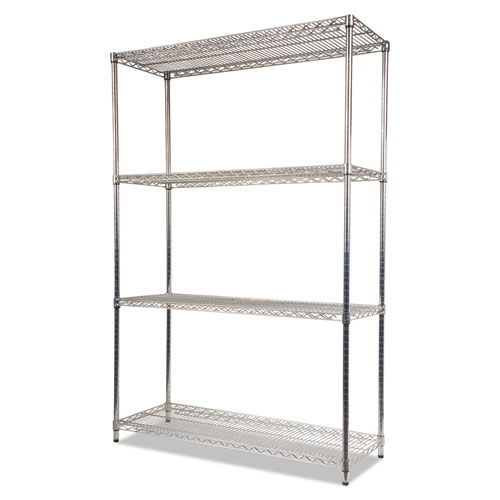 NSF Certified Industrial Four-Shelf Wire Shelving Kit, 48w x 18d x 72h, Silver