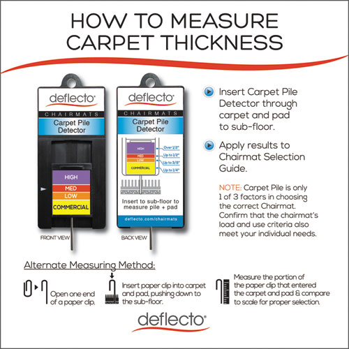 Thinner mat provides a great value while offering economical performance. Lightweight chair mat for occasional use on carpets up to 1/4″ thick. Easy-glide rolling surface provides effortless chair movement. Studded design secures mat from moving while protecting carpet from caster wear, spills and heavy traffic. Free and Clear® non-orthophthalate, non-cadmium formula promotes a healthy work environment while offering exceptional clarity and durability. Classic straight edge finish.