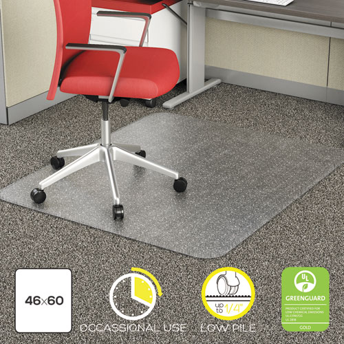 Occasional Use Studded Chair Mat For Flat Pile Carpet, 46 X 60, Rectangular, Clear