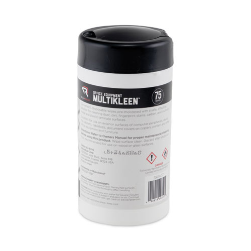 One-step solution to cleaning office equipment, desktops and any plastic or metal surface. Pre-saturated wipes remove dust, dirt, fingerprints, ink and oily smudges. Packaged in a convenient and easy-to-use tub. Not recommended for use on wood or glass surfaces. 75 wipes per tub.