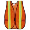 Bright orange color and reflective strips provide high visibility day or night for a variety of hazardous situations. Lightweight polyester mesh fabric with hook and loop closure keeps vest secure in all weather conditions. One size, 18″ x 47″, with 8″ elastic side straps.