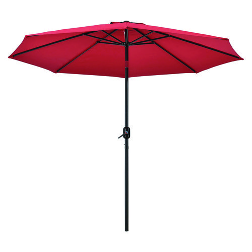 When you need shade pronto for outdoor spaces for hotels, restaurants, and cafes, introduce the Global Industrial™ Outdoor Umbrella with Tilt Mechanism. This commercial umbrella is made of fade-resistant olefin fabric and opens to 8.5 ft to provide plenty of shade. Sturdy black powder-coated aluminum pole comes in 2 pieces which snap in together for easy assembly. Eight aluminum ribs on the underside keep the umbrella steady during sporadic windy conditions. Crank-lever makes it easy to set up and open. Tilt-button allows you to shade your area throughout the day. Fade-resistant for up to 1,000 hours.
