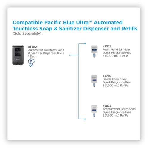 Pacific Blue Ultra Automated Sanitizer Dispenser Refill Foam Hand Sanitizer, 1,000 Ml Bottle, Fragrance-Free, 3/carton